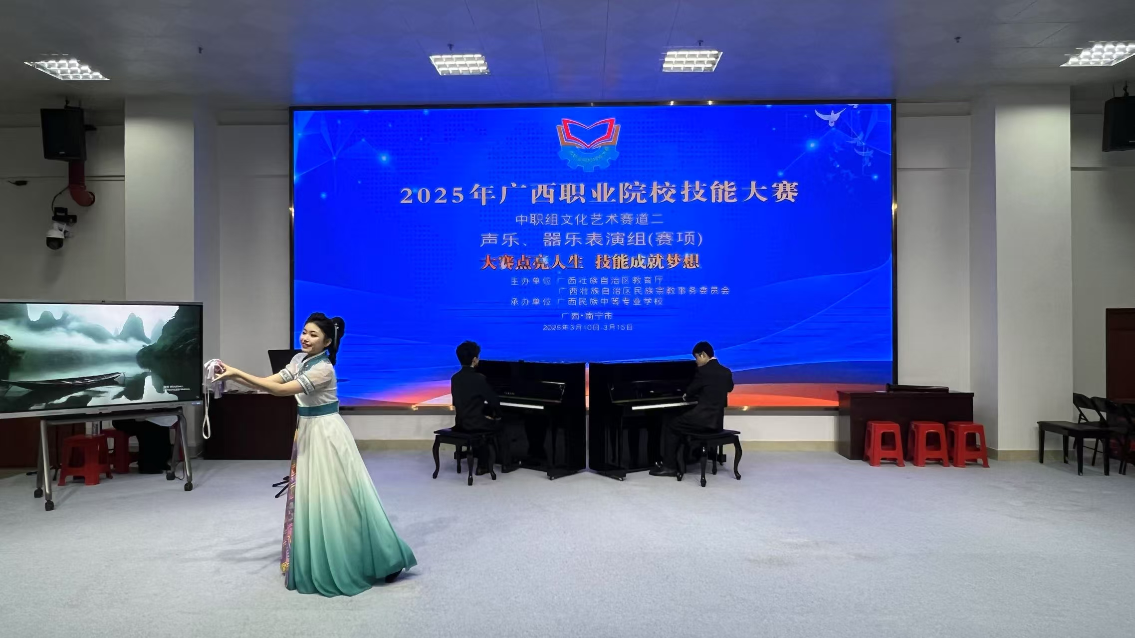 优异成绩的背后是学校的高度重视和师生团队的努力付出。附校组建了校内外行业专家骨干教师导师团队,为员工搭建系统化备赛机制,以钢琴与声乐的多元化协作形式,指导员工策划并演绎了参赛作品——“三姐传歌 八桂兴乐”中华优秀传统文化艺术传承与创新音乐会。使员工在专业技能应用能力、创新思维拓展、团队协作意识及临场应变水平等综合素养方面实现跨越式提升。不仅增强了员工的民族自豪感与文化自信,厚植家国情怀,激发责任担当,更为职业教育人才培养提供了可复制的实践范式。